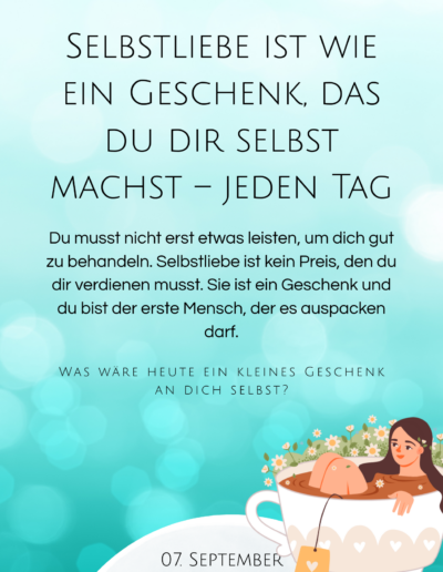 Selbstliebe ist kein Trend. Sie ist eine innere Haltung und eine bewusste Entscheidung. Ich bin unglaublich stolz auf meinen Kalender Weil er aus echter Tiefe entstanden ist. Und weil ich weiß, dass ich damit jeden Tag Menschen ein kleines Stück näher zu sich selbst begleite.