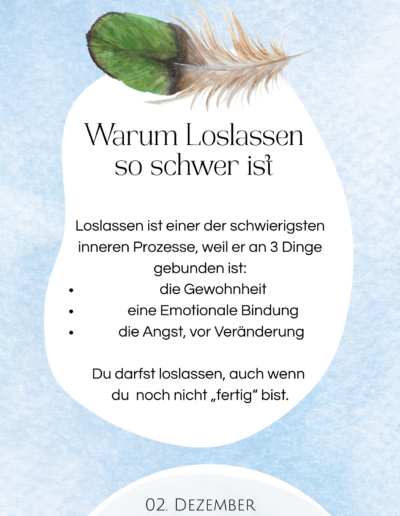 Psychologisch fundiert und all mein Wissen und meine Expertise, stecken in den von mir liebevoll gestalteten Kalender.Der Kalender ist ein Konzept von 365 aufeinander abgestimmte Themen von Neuanfang über Bedürfnisse, Selbstvertrauen und Grenzen bis hin zu Heilung und Loslassen.. Heute begleite ich mit diesem Werk über 300 Menschen durch ihr Jahr.